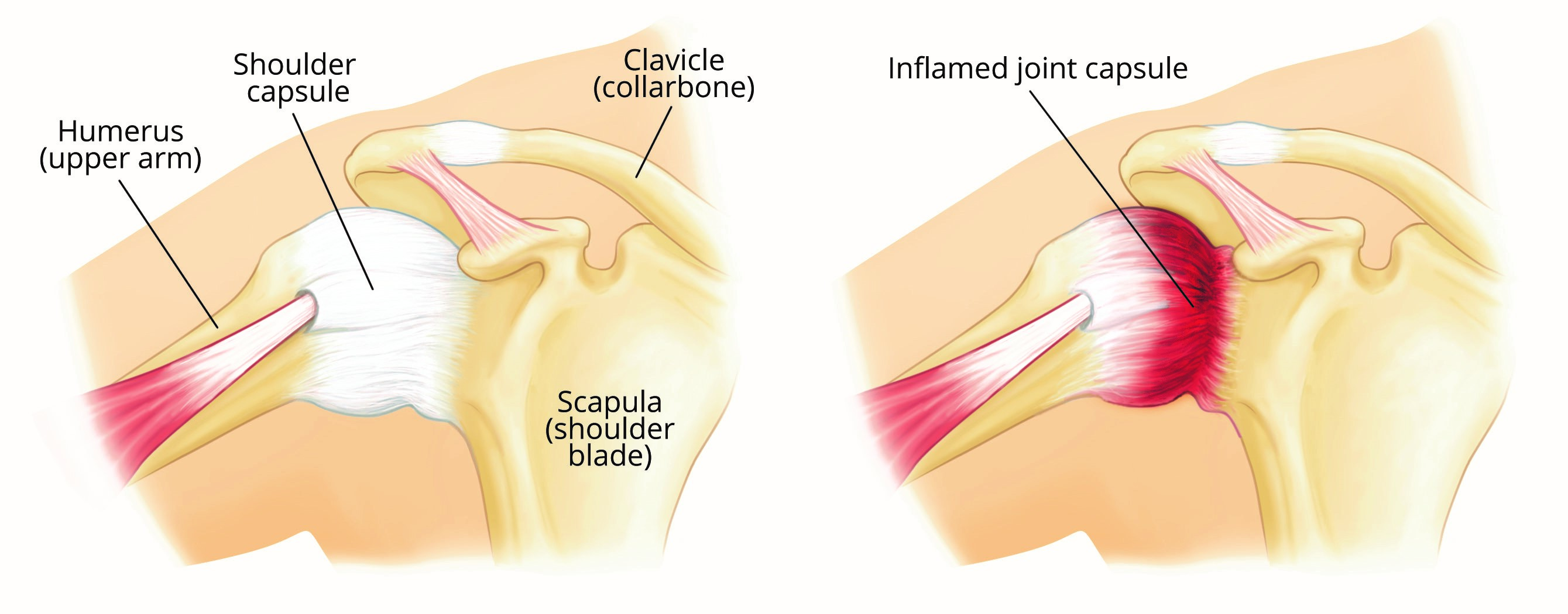 Frozen shoulder is sometimes called adhesive capsulitis, or periarthritis which causes stiffness and pain in the shoulder. In frozen shoulder, the smooth tissues of the shoulder capsule become thick, stiff, and inflamed. After some time, movement of shoulder become difficult or restricted, therefore name frozen shoulder. It affects about two percent of population of 40-60 years and more of women than men.